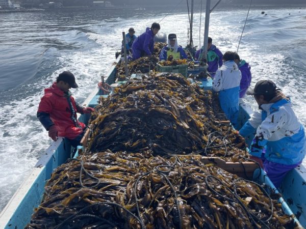 この日は大豊漁。しかし近年はわかめの漁獲量が安定していません。