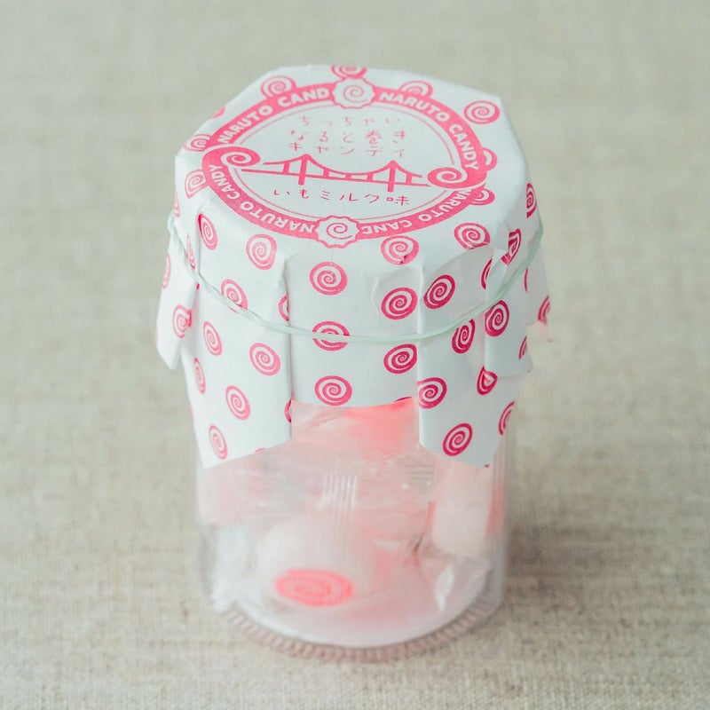 ちっちゃいなると巻きをイメージしたキャンディは口に広がるやさしいあまさのいもミルク味が特徴!