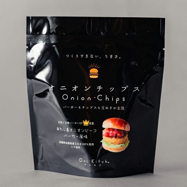 淡路島産玉ねぎを特殊な製法で仕上げたオリジナルオニオンチップス。全国ご当地バーガーグランプリ1位を受賞した「あわじ島オニオンビーフバーガー」の味を再現!もちろん玉ねぎの甘みもしっかり感じていただけます!